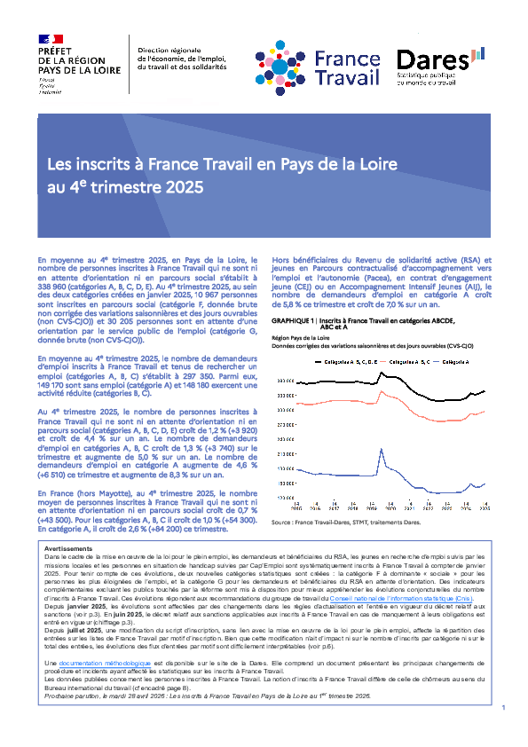 Cette publication de France Travail Pays de la Loire permet de mettre en perspective les taux de chômage de la région, des départements et des zones d’emploi pour le troisème trimestre 2025.