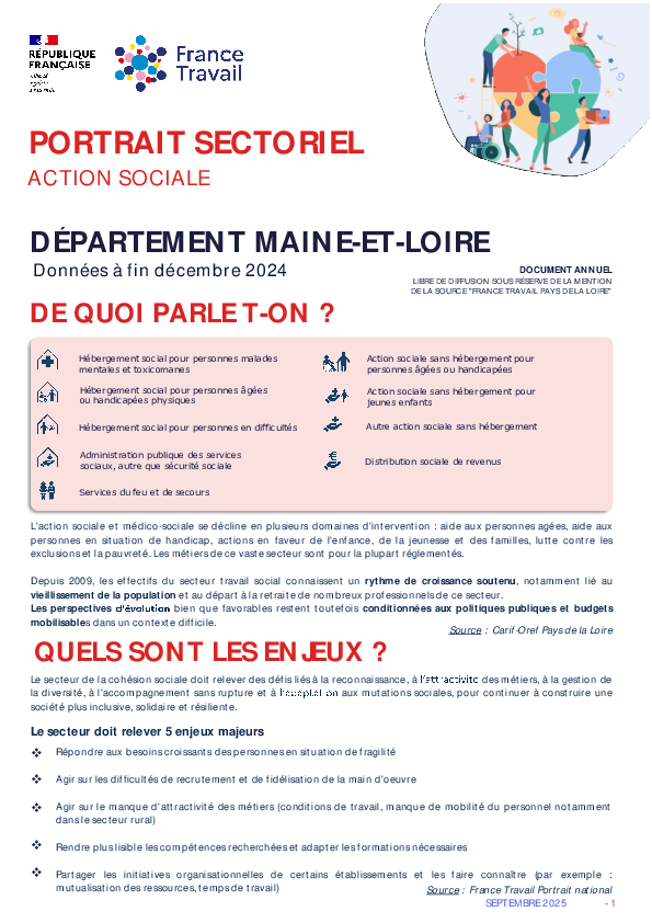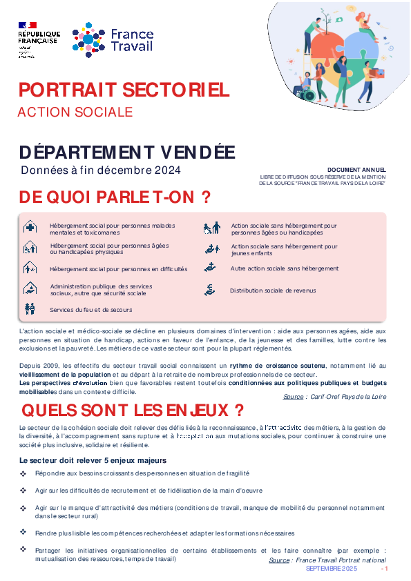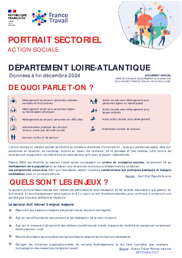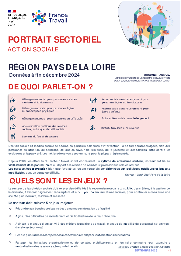 Les 2 800 établissements de la région intervenant dans l'action sociale emploient près de 62 900 salariés à fin 2024.Le secteur représente 5,4% de l'emploi régional.Plus de 125 000 embauches ont été déclarées en 2024, soit une légère progression de +1,2 % sur un an.Dans le secteur, 84 % des demandeurs d’emploi sont des femmes. Ces dernières représentent également une large majorité des embauches, avec 80 % des recrutements.