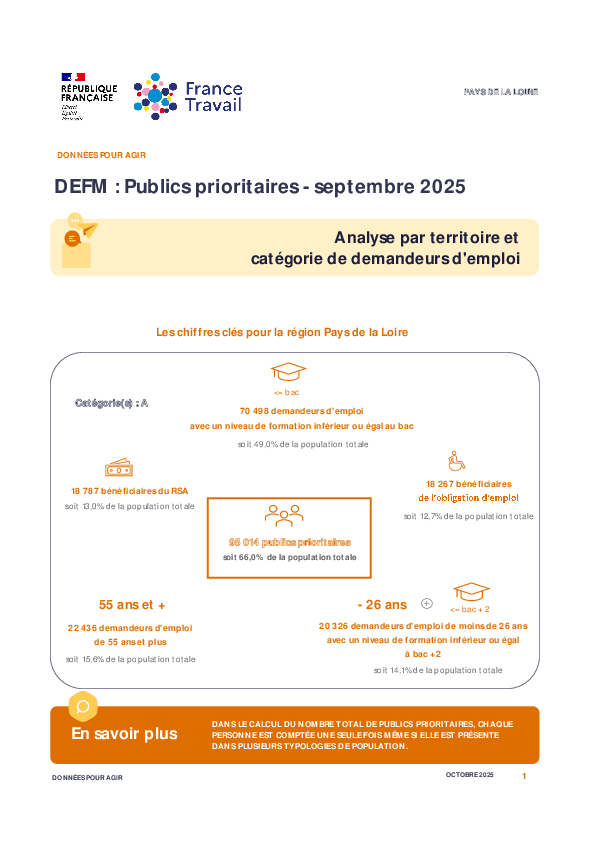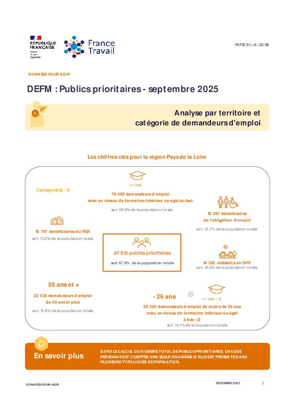 Retrouvez les caractéristiques de la demande d'emploi des publics prioritaires par territoires.