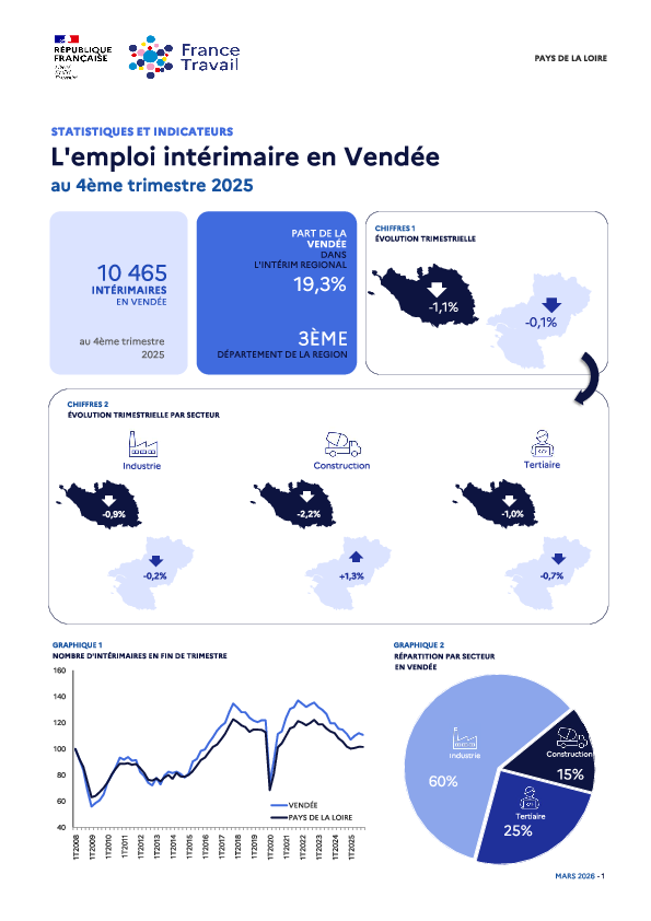 Synthèse de l'emploi intérimaire en Vendée au 4ème trimestre 2025.